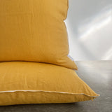 Our New Classico Cushions are made from heavy weight linen in its highest quality of 100% French Flax + Stone Washed. These are perfectly finished with a contrast embroidered edging for a playful finish. This stunning classic style can work with any space and interior adding rich texture and feel. Best filled with feather insert.