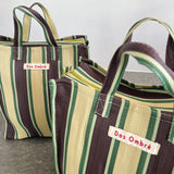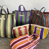 Durable and eco-friendly, our everyday Bengali Bags are made from 100% Recycled Nylon in assorted coloured stripes, perfect for everyday use and features and zipper enclosure. Reusable and a super strong 'carry all' perfect for shopping, beach and everyday living.