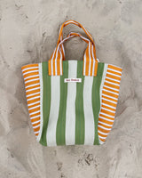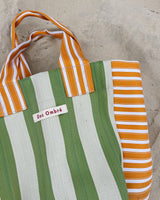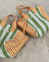 Durable and eco-friendly, our everyday BIG Bengali Bags are made from 100% Recycled Nylon in assorted coloured stripes, perfect for everyday use and features an inside pocket for easy to reach valuables and enough room for the whole family. Reusable and a super strong 'carry all' perfect for shopping, beach and carrying lots on a comfortable, easy and over the shoulder design.