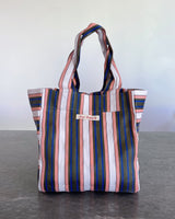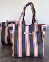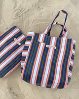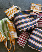 Durable and eco-friendly, our everyday BIG Bengali Bags are made from 100% Recycled Nylon in assorted coloured stripes, perfect for everyday use and features an inside pocket for easy to reach valuables and enough room for the whole family. Reusable and a super strong 'carry all' perfect for shopping, beach and carrying lots on a comfortable, easy and over the shoulder design.