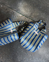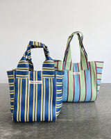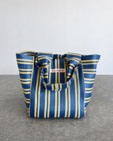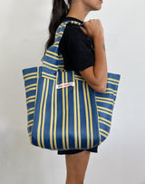 Durable and eco-friendly, our everyday Shoulder Style Bengali Bags are made from 100% Recycled Nylon in assorted coloured stripes, perfect for everyday use and features an inside pocket for easy to reach valuables and enough room for the whole family. Reusable and a super strong 'carry all' perfect for shopping, beach and carrying all the essentials on a comfortable, easy + over the shoulder design.