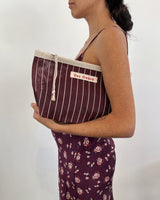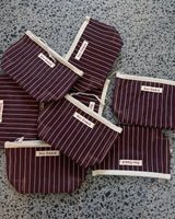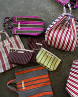 Durable and eco-friendly, our everyday Bengali Clutch is made from 100% Recycled Nylon in assorted coloured stripes, perfect for everyday use, travel and toiletries, also features an inside compartment.